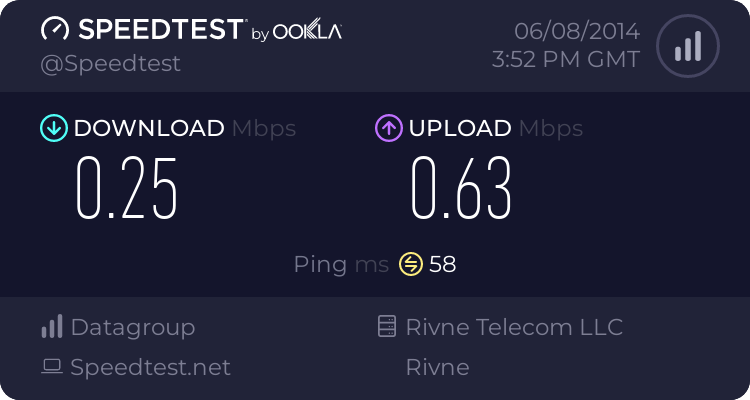 P.S. До речі, я плачу 85 абонплату і не шкодую, бо знаю що Інтернет у мене буде стабільно за будь-якої негоди. P.P.S. Намотую до трьох з гаком терабайти за місяць, тож перевірено, що безлімітний. Хоча ліміт є, але по швидкості, бо вище 100 Мб/с не стрибнеш (десь 11.8 Мбайт/сек. вижимаю без проблем при завантажені чи вивантажені навіть під час бурі).